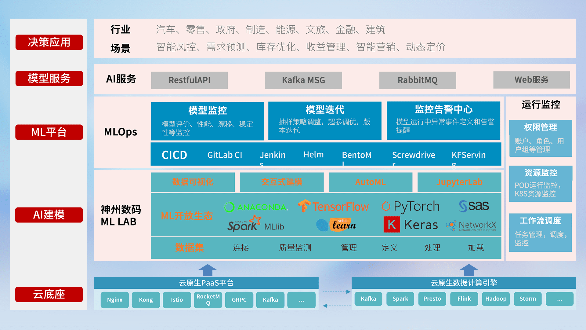 数据+模型双引擎驱动,,,,面向智能服务场景,,,快速灵活利用AI技术,,,支持业务决策,,,,助力企业智能化转型破局。。